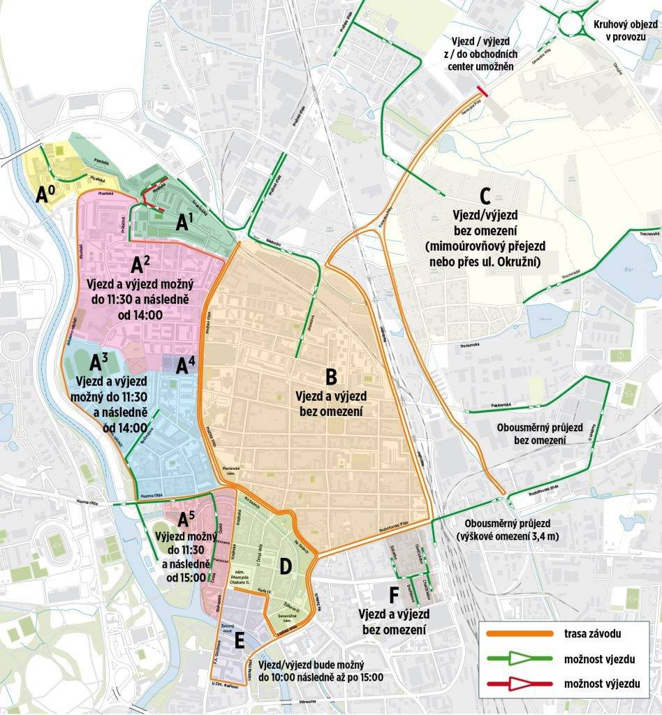 Generála Píky: 11:30–16:30 (vjezd / výjezd z / do obchodních center umožněn po celou dobu závodu)
