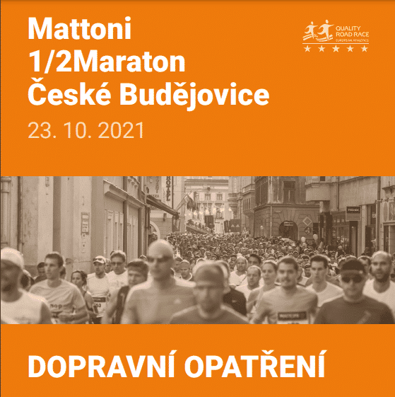 Odbor dopravy a silničního hospodářství stanovuje přechodnou úpravu provozu na místních komunikacích a silnicích II. a III. třídy pro zajištění bezpečnosti a plynulosti silničního provozu po dobu konání tradičního mezinárodního běžeckého závodu Mattoni 1/2 Maraton České Budějovice 2021, a to v sobotu 23.října.