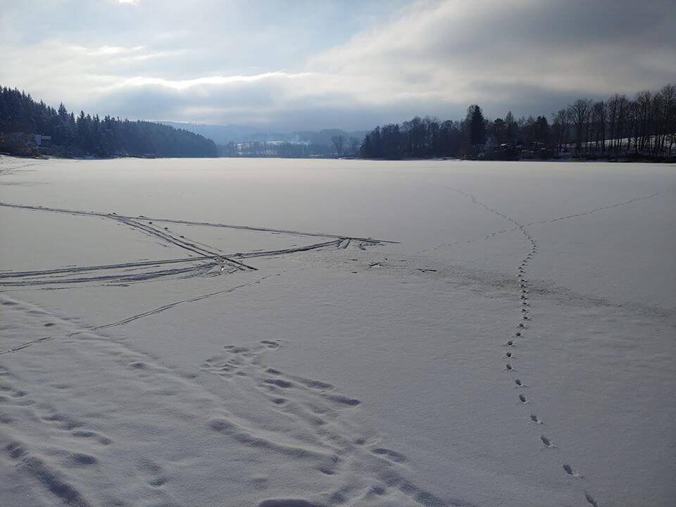 Lepší zprávu je pro bežkaře – pár stop na ploše se najde. Dejte pozor na ledové plotny (zmrzlá voda z prasklin) a hlavně mějte na paměti, že pod sněhem se mohou schovávat nebezpečná místa…