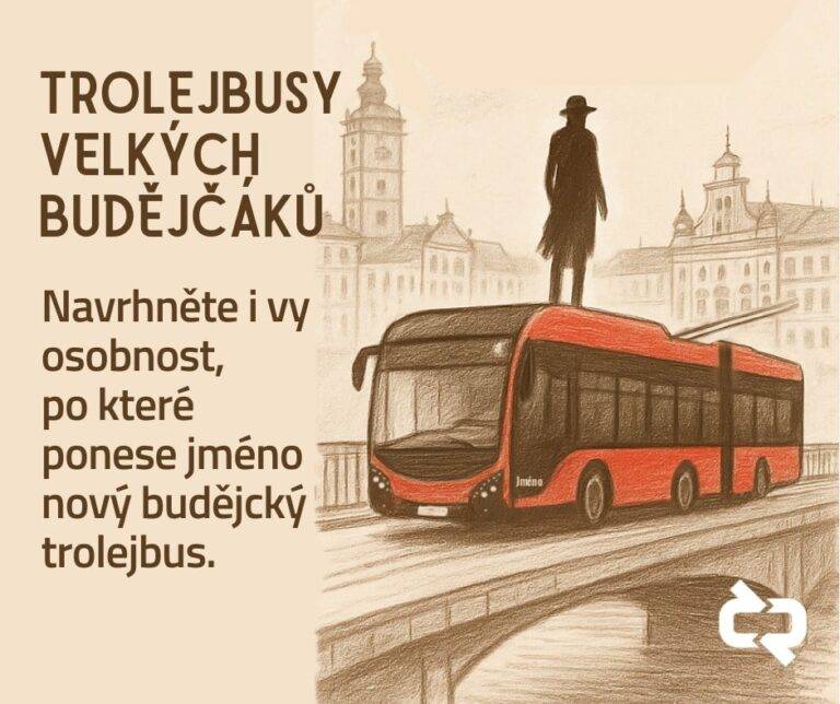 Už 14 trolejbusů z letošní jarní dodávky obdrželo od dopravního podniku svá jména, mezi nimi například Přemysl, Budivoj, Lída či Marta. Na tuto tradici nyní naváže veřejná výzva: obyvatelé města mohou zasílat své návrhy na jména dalších významných Budějčáků z historie. Nemusí přitom jít přímo o rodáky – podmínkou je, že navrhovaná osobnost ve městě v minulosti žila nebo zde významně působila a zanechala po sobě stopu.