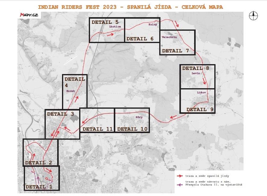 Z důvodu úplné uzavírky náměstí Přemysla Otakara II. v souvislosti s konáním akce Indian Riders Fest 2023 budou v sobotu 10. června 2023 od 11:00 do 14:30 hodin odkloněny všechny spoje linek 21, 22 a 23 po objízdné trase ulicemi Kněžská a Jirsíkova dle přiloženého schématu.