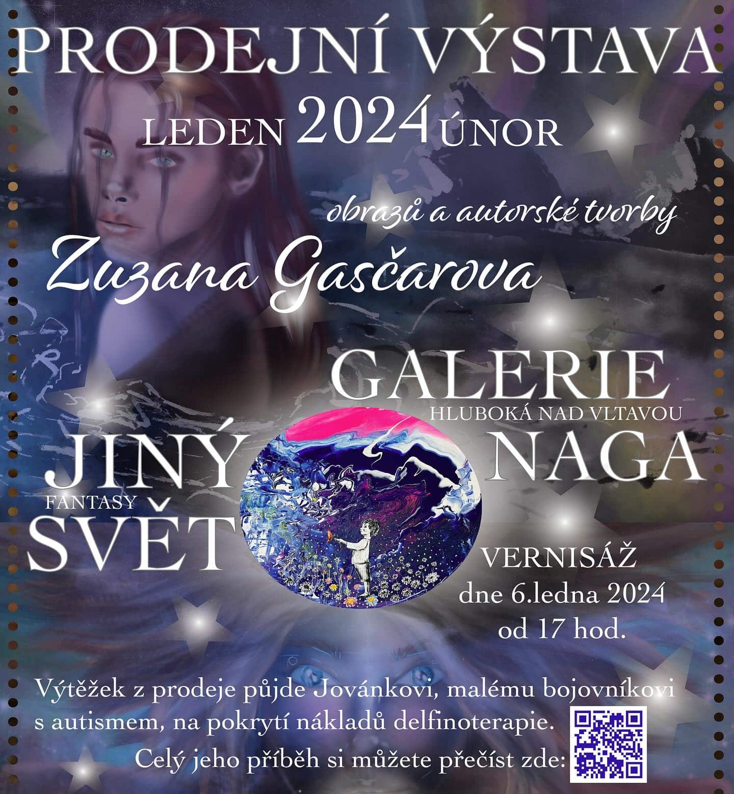 Autorkou výstavy je maminka, Zuzana Gasčarova, která se věnuje tvorbě motivačních obrazů tvořené akvarelem nebo digitálně. Chce tak podpořit svého syna, aby se zrealizovala další delfinoterapie pro Jovánka, která mu pomáhá v oblastech verbální komunikace a sociální interakce.