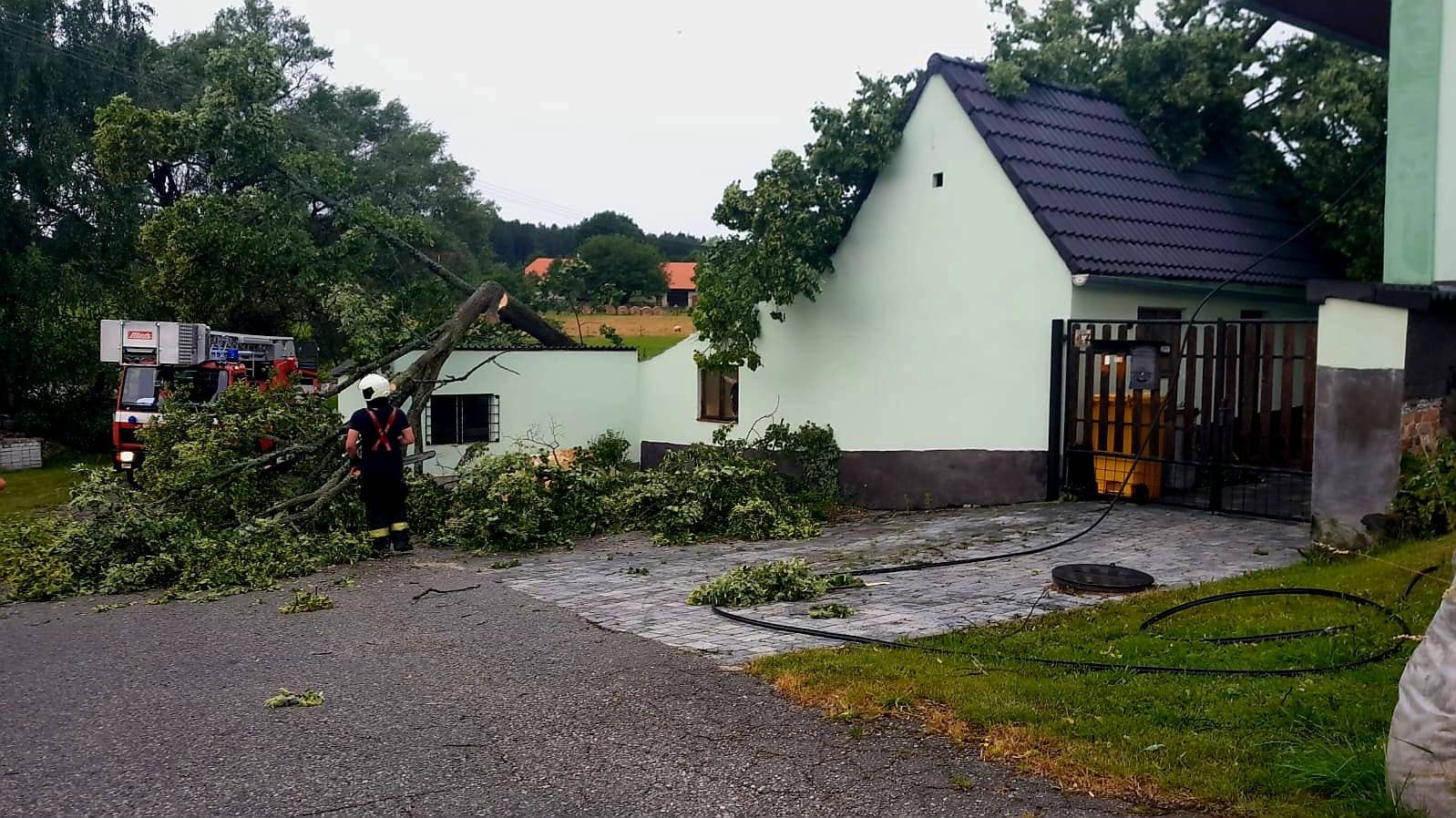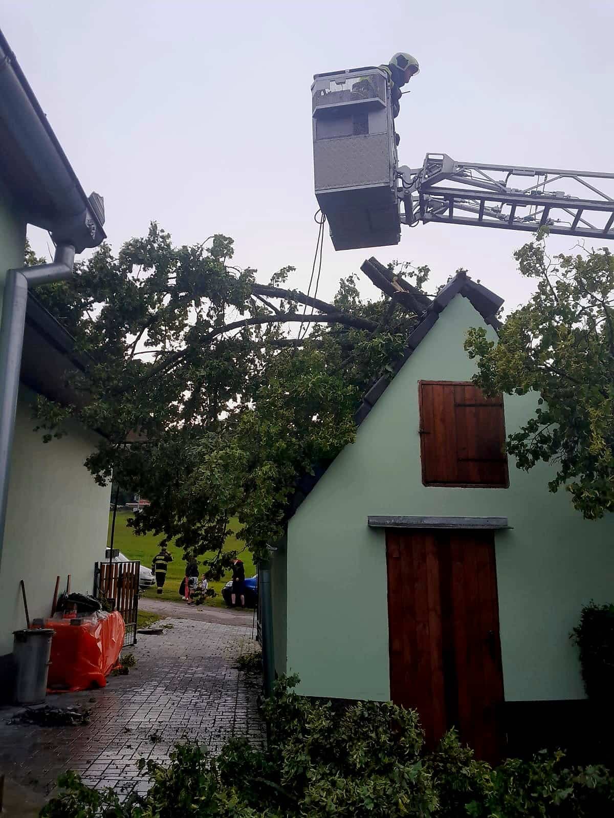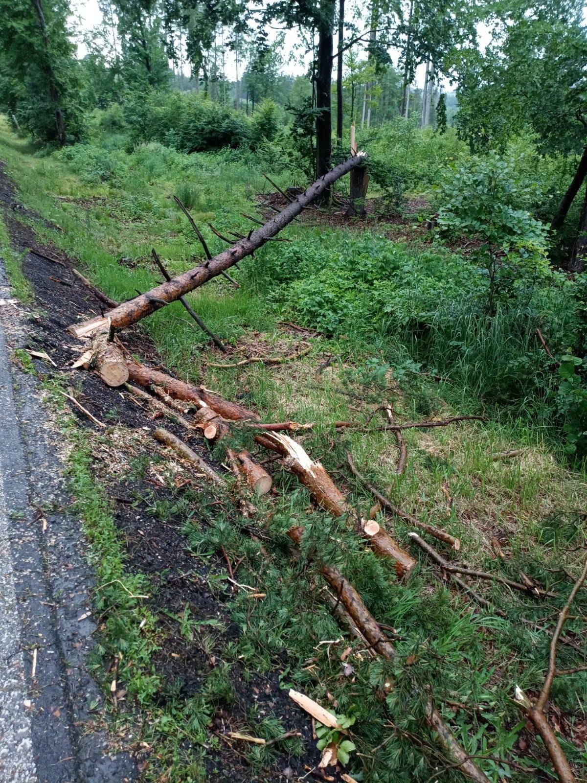 K popadaným stromům začaly jednotky profesionálních a dobrovolných hasičů vyjíždět krátce před 15. hodinou. Pás bouřek přešel celý kraj od západu na východ.