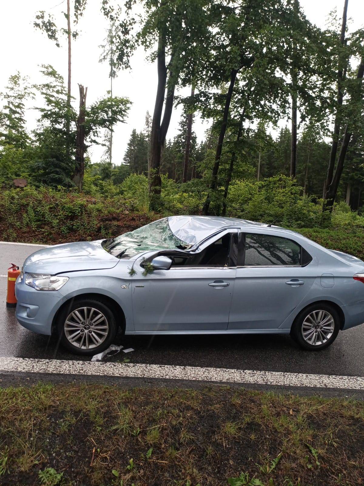 • u Hodonic uvěznily popadané stromy paní v jejím osobním autě, u Putimi spadané stromy zablokovaly autobus,