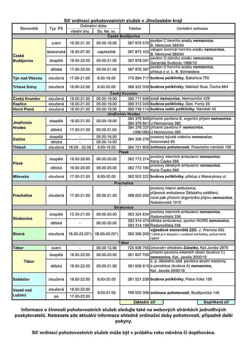 Lékařská a lékárenská pohotovost v Jihočeském kraji