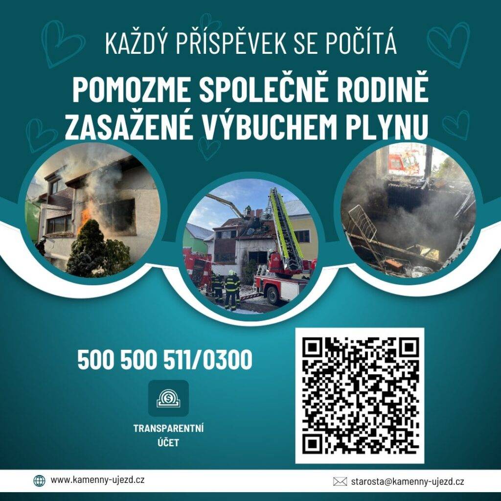 Kdo by chtěl přispět v hotovosti, kasička se sbírkou určenou na pomoc rodině bude viditelně označená a bude umístěna v kostele v Kamenném Újezdu