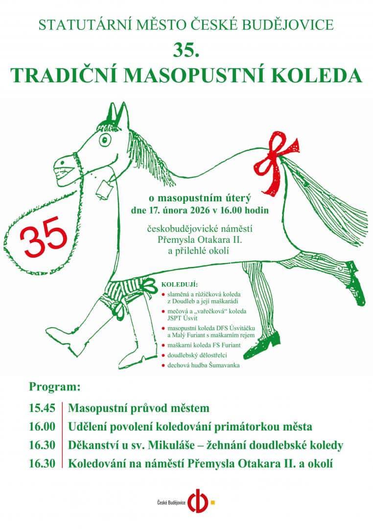 „V Budějcích letos máme už pětatřicátý ročník. Na náměstí Přemysla Otakara II. se představí slaměná, růžičková, mečová i vařečková koleda a věřte, že tady bude pěkně veselo. Už se samozřejmě moc těším na udělování povolení koledování, což je každoroční rituál „na oko“ vážný, ale jinak plný smíchu a dobré nálady. Je třeba si všeho pěkně užít, protože druhý den už nastane Popeleční středa, která ukončí masopustní hodování a křesťanům začne čtyřicetidenní půst. Jeho smyslem je především duchovní očista před Velikonocemi, kdy se lidé zříkají masa a celkově jedí a chovají se ve všem střídmě,“ říká primátorka Dagmar Škodová Parmová a všechny na náměstí srdečně zve.
