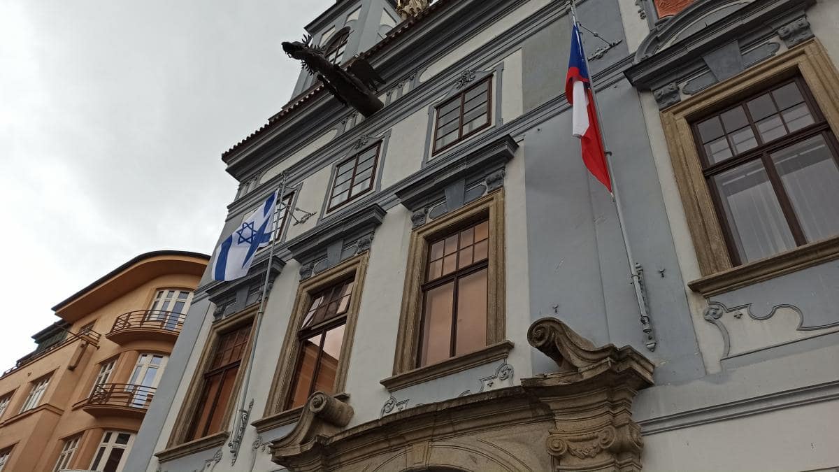 Na radnici vlaje Izraelská vlajka