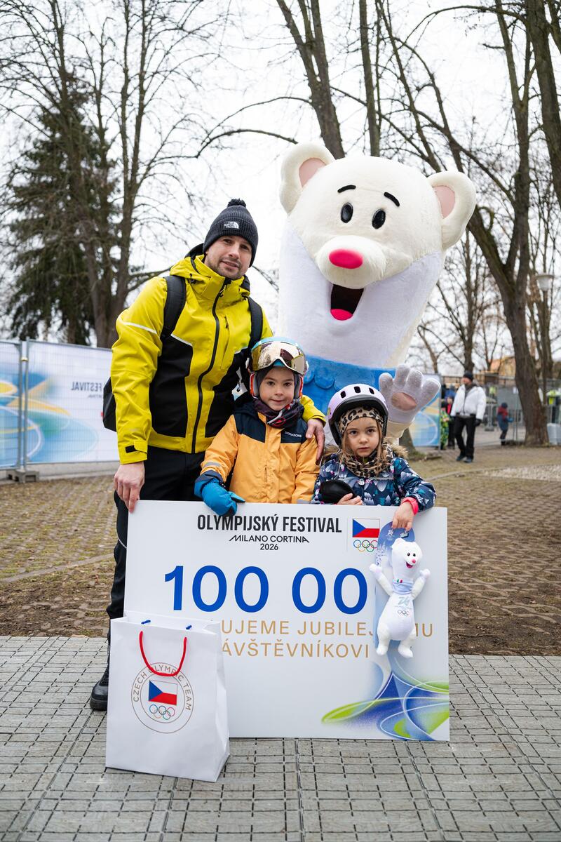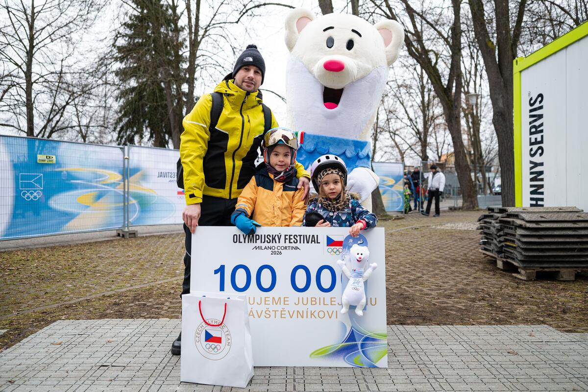 Jako stotisící návštěvník si Peterka odnesl balíček, který by potěšil nejednoho fanouška zimních sportů. Helmu s podpisem českého lyžařského esa Jana Zabystřana. Lyžařské brýle podepsané olympijskou vítězkou v alpském snowboardingu Zuzanou Maděrovou. K tomu pastelky od tradiční české značky KOH-I-NOOR, rukavice z letošní olympijské kolekce od Alpine Pro a maskota olympijských her Týnu, která okamžitě skončila v dětském objetí.