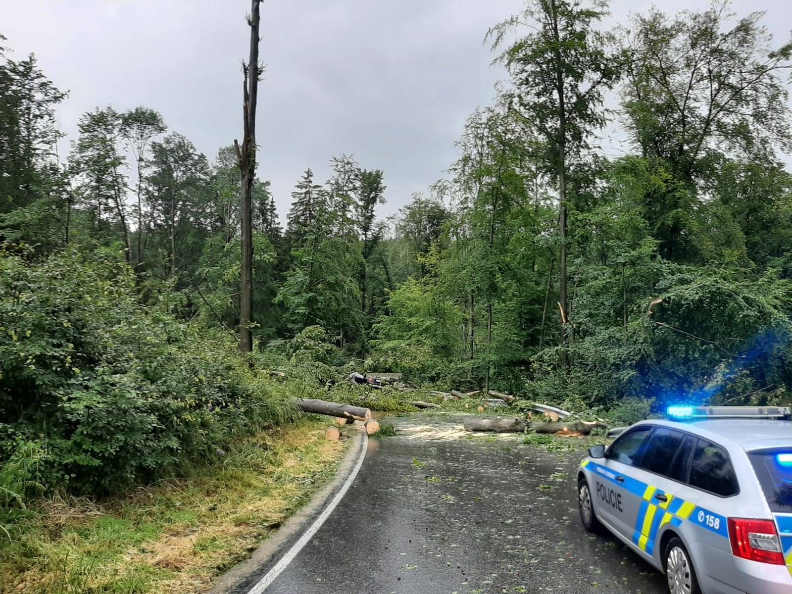 Místem projíždělo vozidlo značky Fiat, posádka vzala děti do svého vozidla aby je ochránila před bouřkou. Rodiče dětí zůstali venku. Vozidlo ujelo několik metrů, byl silný vítr, na silnici popadalo několik stromů a bohužel jeden z nich spadl i na vozidlo.