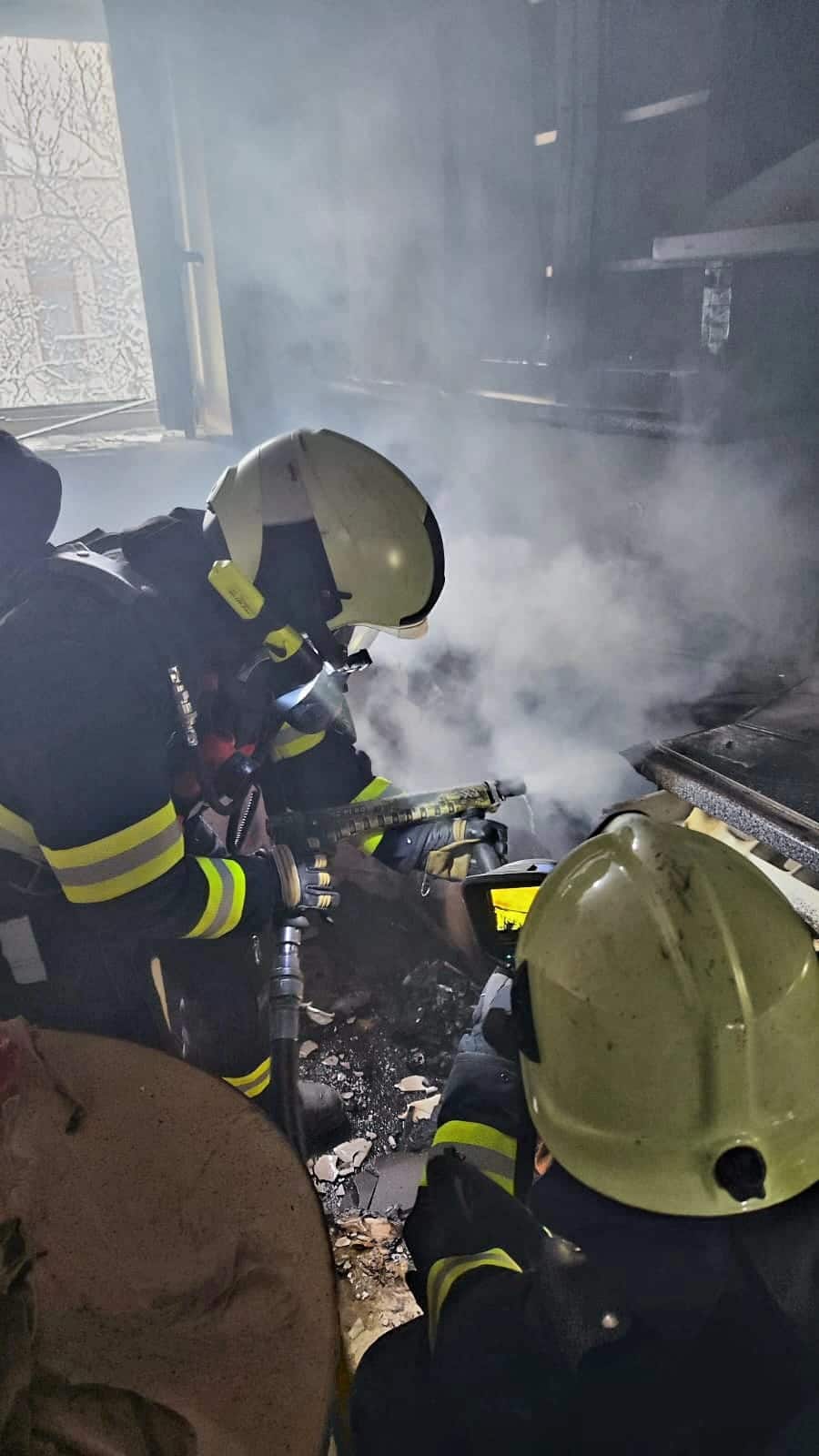 Vysláni byli profesionální hasiči ze stanice České Budějovice, podnikoví hasiči SŽ České Budějovice a JSDHO Hrdějovice. Požár uhašen vysokotlakým proudem. Na odvětrání nasazena přetlaková ventilace. Požár byl  hasiči rychle uhašen, přesto celá kuchyň zničená.