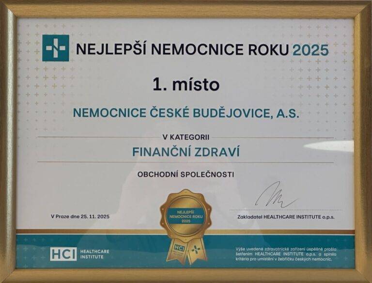České Budějovice – Nemocnice České Budějovice, a.s. obhájila svou pozici mezi nejlepšími zdravotnickými zařízeními v České republice. V celorepublikovém hodnocení společnosti HealthCare Institute „Nejlepší nemocnice 2025“ získala mezi nemocnicemi fungujícími jako obchodní společnosti první místo v kategorii finanční zdraví.