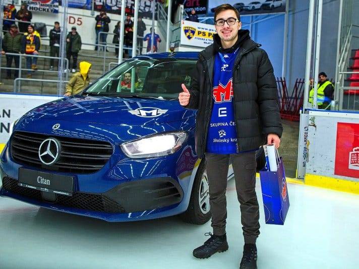 Tu vyhrál a získal tak šanci vystřelit si pro sebe Mercedes od společnosti Milan Král Group. Stačila „maličkost“, trefit přes celé hřiště otvor velký přesně tak jako je velký puk. A přesně to se také stalo! Novým majitelem Mercedesu Citan je od pátku 27. ledna 2023 Petr Běhounek, neskutečný výkon, gratulujeme!!!