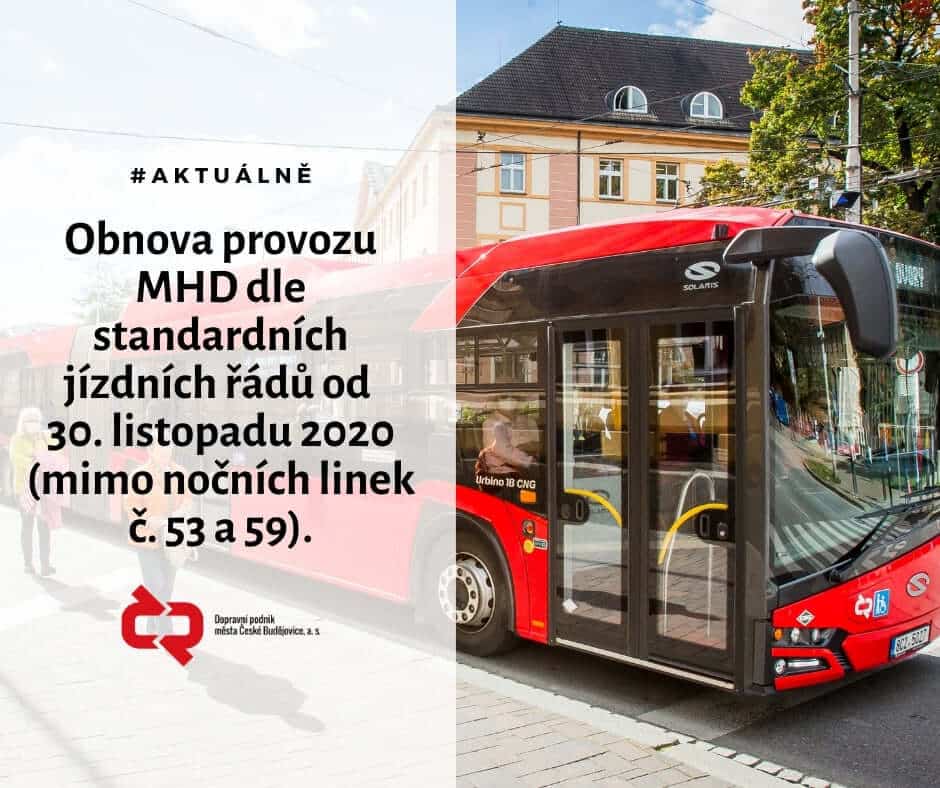 Došlo k rozhodnutí o obnově provozu linek MHD podle běžných jízdních řádů pro pracovní dny od pondělí 30. listopadu 2020.