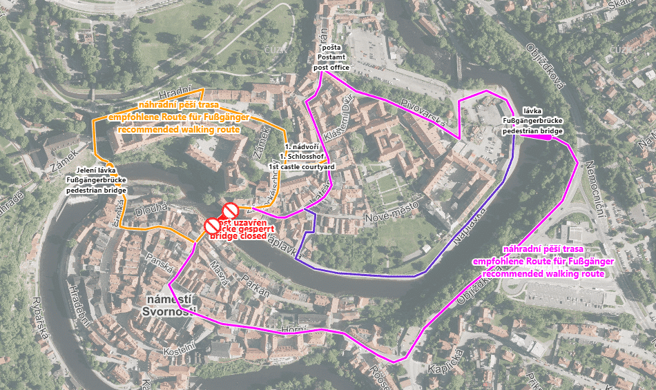 Od 2. ledna 2024 bude v Českém Krumlově zcela uzavřen Lazebnický most pro dopravu i pěší