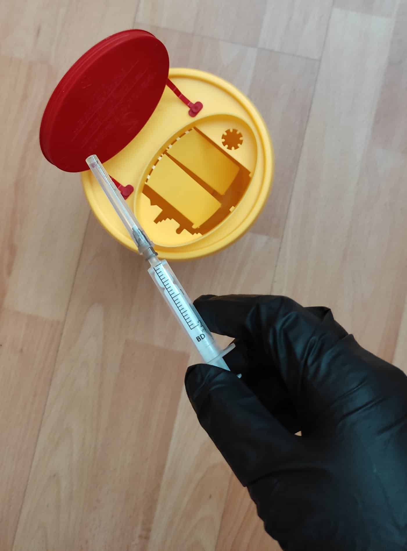Nabádáme občany, aby v případě nálezu odhozené injekční stříkačky nenechávali nález ležet bez povšimnutí a věc oznámili městské policii na telefonní linku 156. Nikdy nesbírejte infekční materiál holýma rukama. Strážníci, kteří jsou ke sběru infekčního materiálu speciálně vyškoleni a disponují ochrannými pomůckami, injekční stříkačky bezpečně seberou a zlikvidují.
