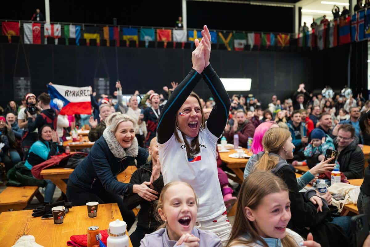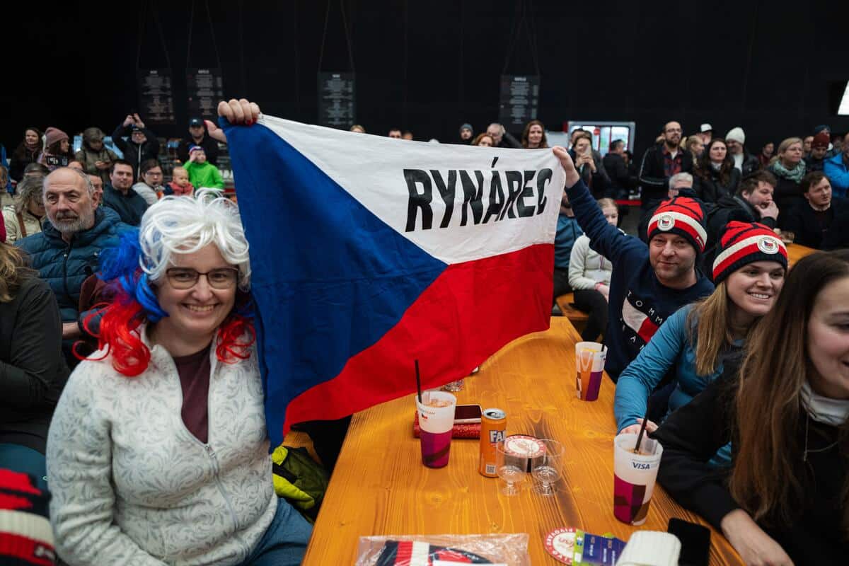 Sportoviště se plnila už od rána, návštěvníky nevyhnalo ani mrholení. A když se blížil očekávaný souboj o medaile v paralelním obřím slalomu, ve fanzóně byla hlava na hlavě. Vlajky na tvářích i v rukách, raškovky naražené na hlavách a lev na hrudi, tak vypadali fanoušci, když se o postup praly naše reprezentantky.