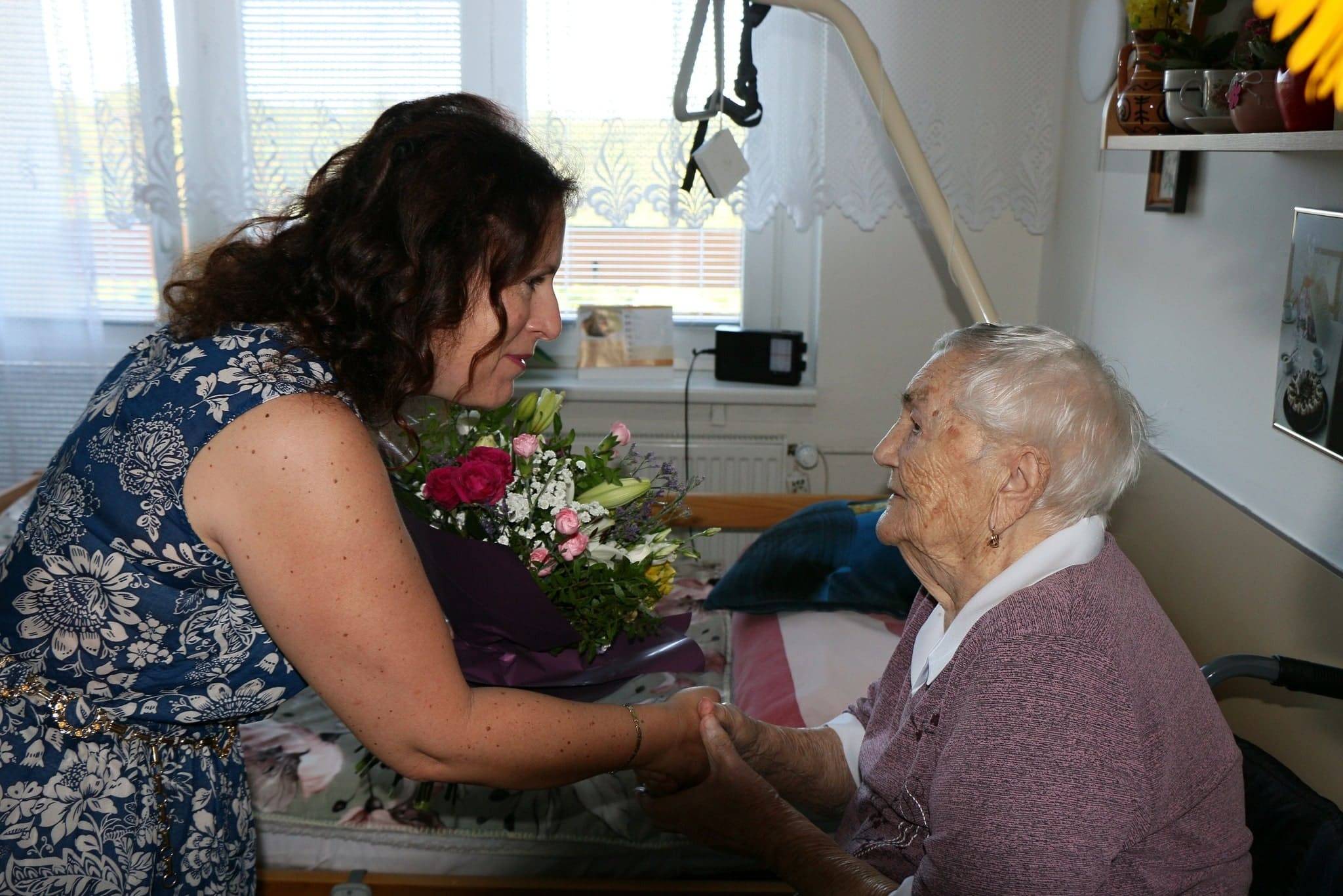 České Budějovice – Paní Annou Kroupovou, která oslavila úctyhodných 103 let, navštívila primátorka Dagmar Škodová Parmová.