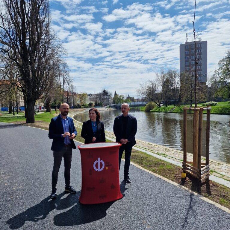 Tisková konference ke znovuotevření Parku Dukelská s představiteli města proběhla ve čtvrtek odpoledne přímo na místě