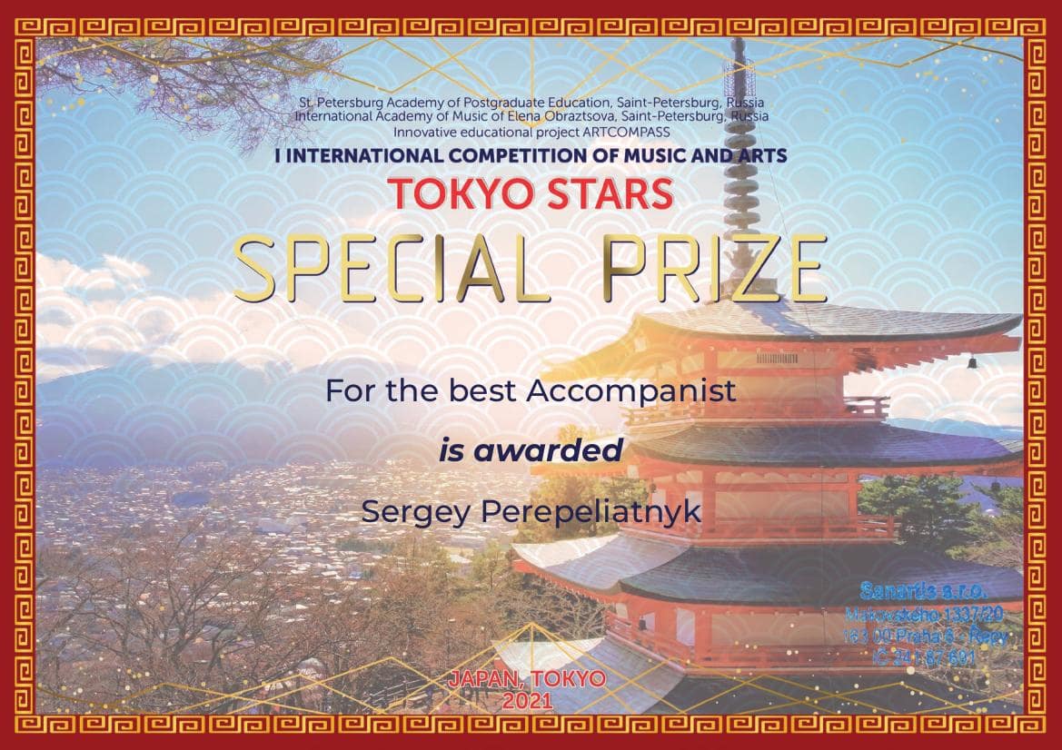 Sbormistryni Jitce Šimkové a klavíristovi Sergey Perepeliatnykovi byly uděleny speciální ceny: „Nejlepší učitel“ a „Nejlepší klavírista“. Sbor obdržel blahopřejné listy za svůj soutěžní výkon.