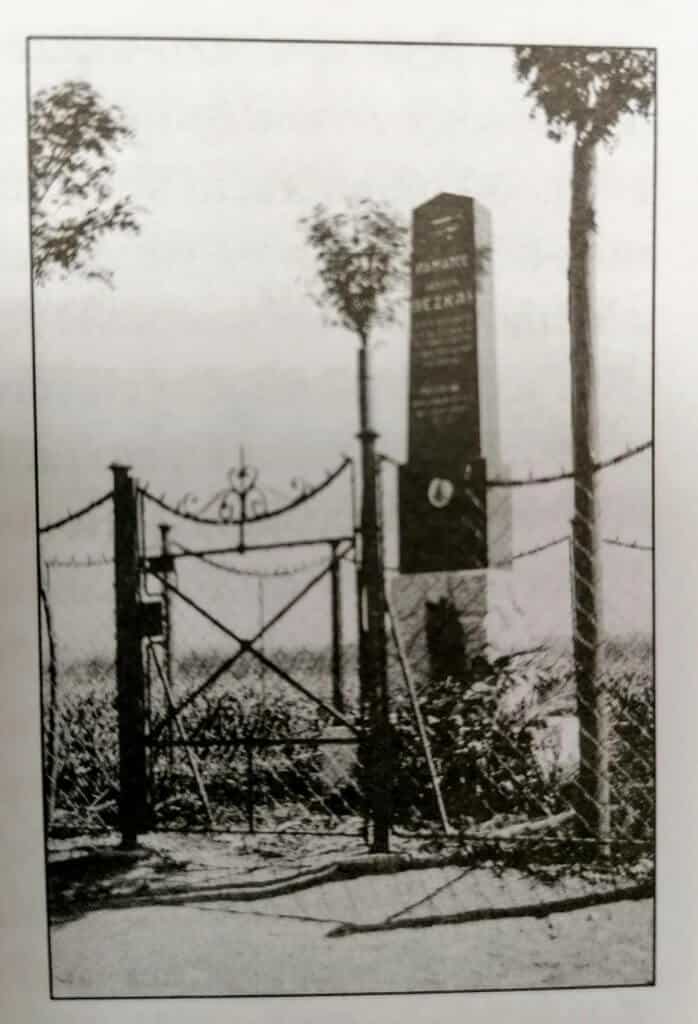 „Okrašlovací spolek chtěl zřídit tragicky zesnulému kolegovi zvláštní pomník, což se podařilo. Jeho slavnostní odhalení bylo v červnu 1925. Postupem času, kdy se sídliště rozrostla, zůstal pomník obklopen paneláky a vyřádili se na něm i vandalové. Jeho torzo se stalo v roce 2006 majetkem Vojensko – letecké historické společnosti České Budějovice.