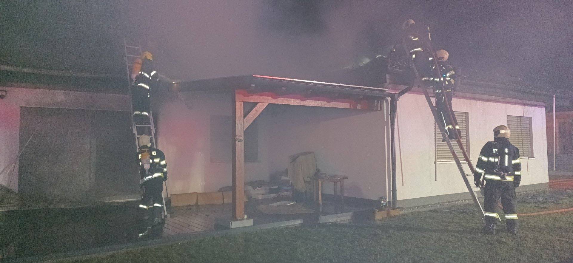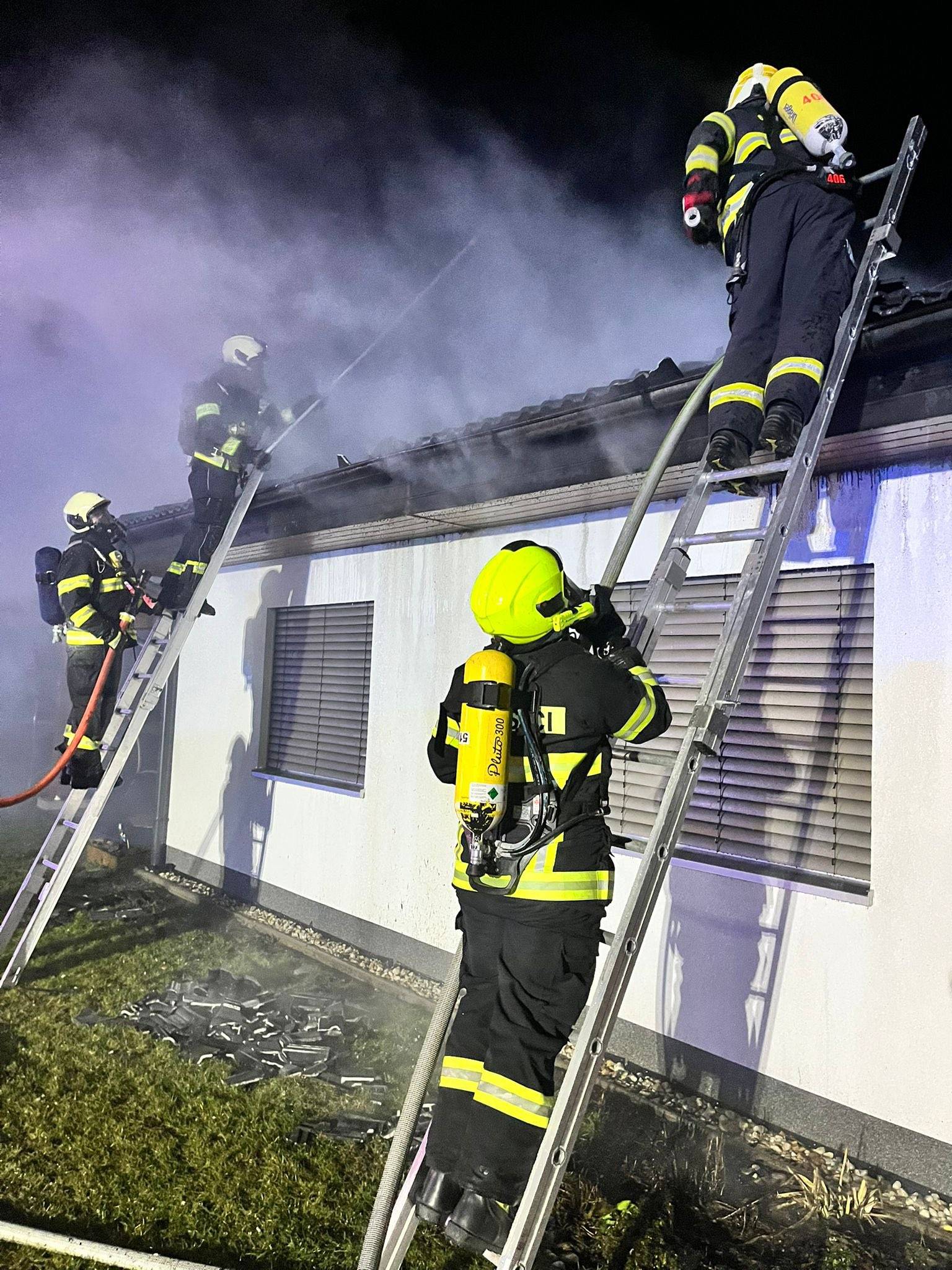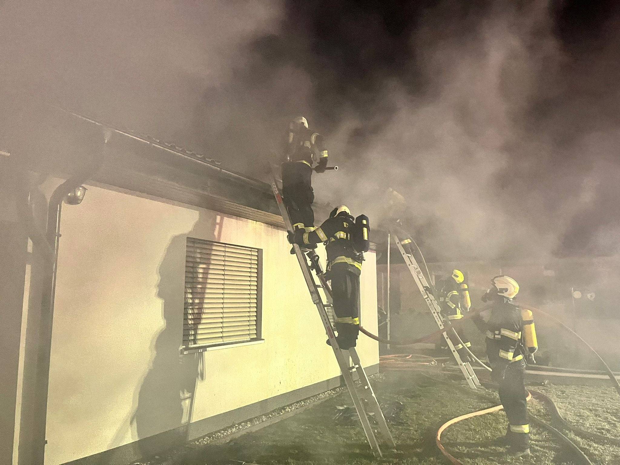 Po příjezdu na místo hasiči zjistili, že se oheň v interiéru velmi rychle rozšířil. Od hořícího vánočního stromečku se plameny dostaly až na střechu a v době příjezdu jednotek hořel dům v plném rozsahu. Velitel zásahu rozhodl o zřízení čerpacích stanovišť pro zajištění dostatku hasební vody.