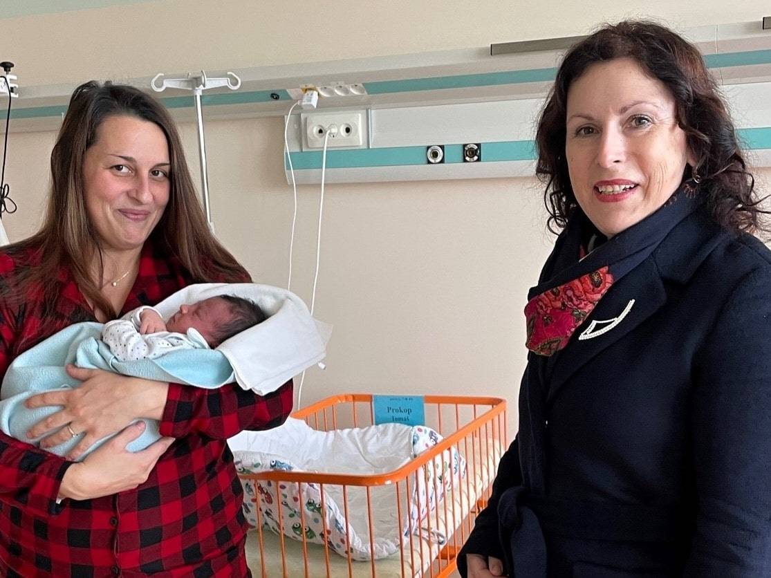 Malý Tomášek přišel na svět jako první českobudějovické miminko ve dvě hodiny ráno v neděli 1. ledna 2023. Maminku s dítětem dnes s dárky navštívila primátorka Dagmar Škodová Parmová. Chlapeček váží 3670 gramů a doma v Litvínovicích se již na něj těší o necelé dva roky starší bráška Radeček.
