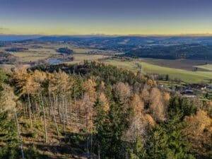 Rozhledna Hradišťský vrch – výhled na Novohradky i Alpy