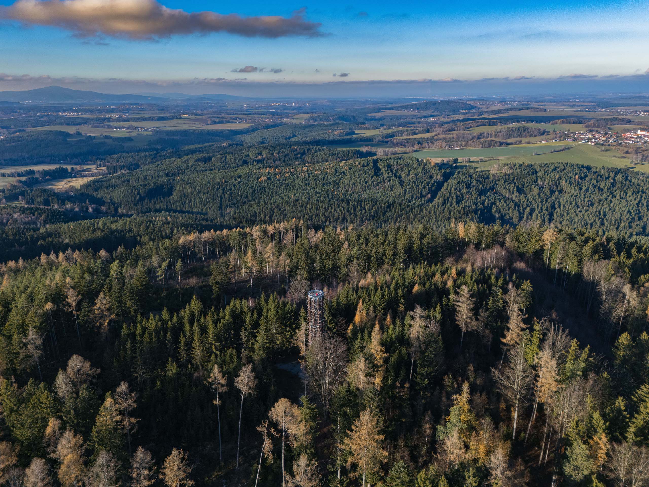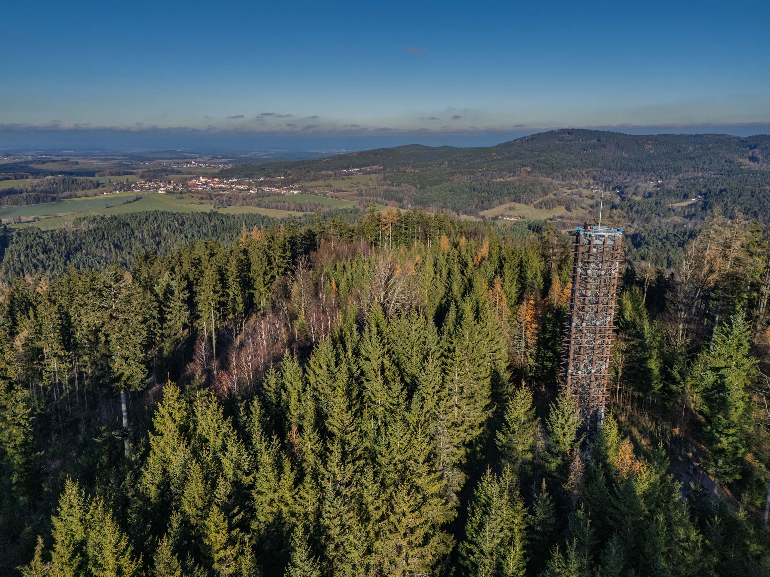📅 Zajímavost: Rozhledna stojí na místě bývalého keltského oppida a její tvar odkazuje na pětilistou růži Rožmberků.