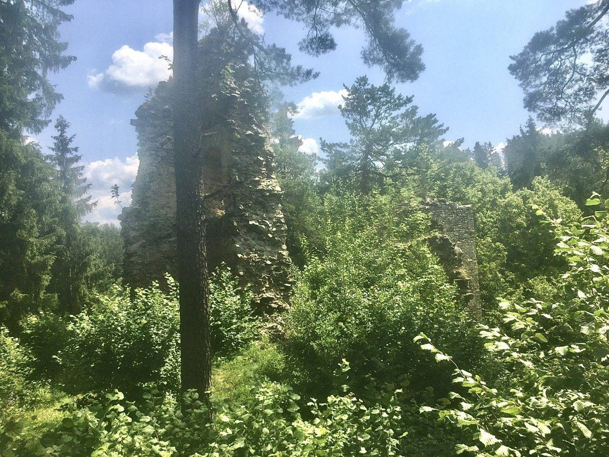 která vás nasměruje polní cestou ke zřícenině. Pak je to přijatelná, krátká a příjemná procházka i ve vedrech.