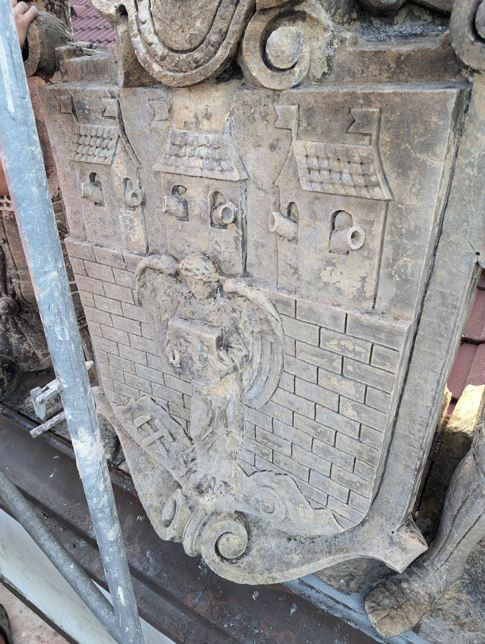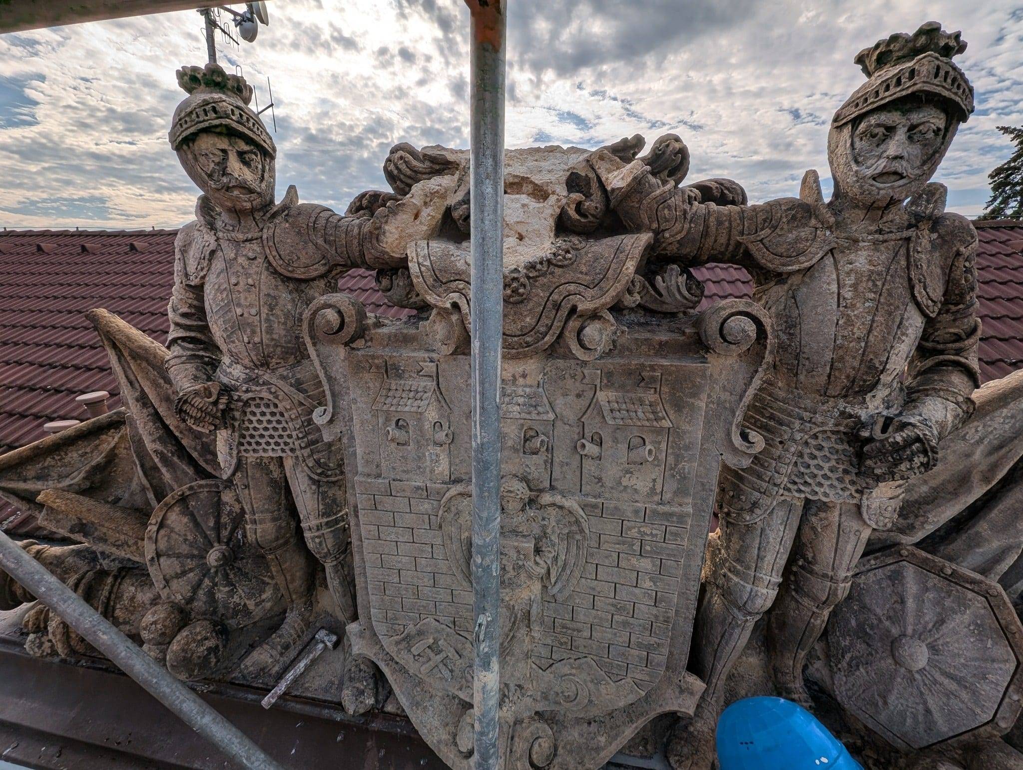 „Během 130 let se na uměleckém díle z pískovce výrazně podepsal zub času a vlivem povětrnostních podmínek se začalo rozpadat, dokonce muselo být zajištěno ochrannou sítí. Proto jsem velmi přivítal, že se provozovatel areálu rozhodl pro restaurování celé skulptury. Pokud by se nám nepodařilo tohle sousoší zachránit, tak by to byla nenapravitelná škoda. Jde, mimo jiné, o jedno z posledních ztvárnění znaku města, který Budějovice používaly v letech 1648 až 1932. Mám samozřejmě velkou radost, že záměr rekonstrukce této památky z roku 1895 našel podporu v městském rozpočtu,“ uvedl náměstek primátorky pro památkovou péči Tomáš Bouzek.