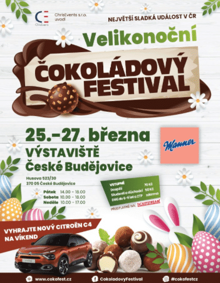 Akce je jedinečnou událostí pro všechny milovníky čokolády a cukrovinek, kteří mají chuť se pobavit a skvěle si pochutnat. Vstup 70, Kč. Sleva pro studenty, důchodce (50,- Kč). Pro děti do 6 let bude zadarmo.