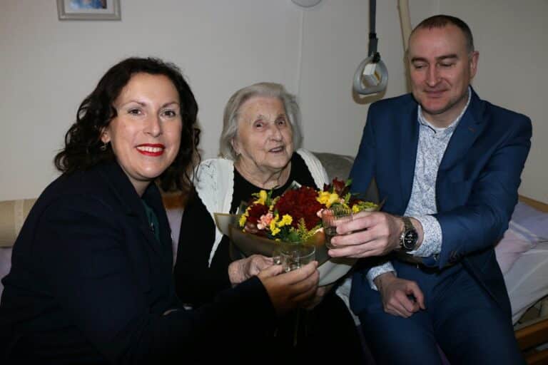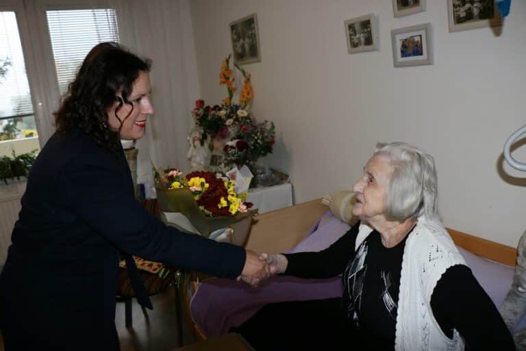 České Budějovice – Paní Zdenku Zimerovou navštívila v Domově pro seniory Hvízdal primátorka Dagmar Škodová Parmová, aby jí srdečně popřála k významným narozeninám. „Je to obdivuhodná dáma, která i ve sto letech moc ráda háčkuje a ruční práce jsou její celoživotní zálibou, stejně jako bývala zahrádka. Rodačka z Českých Budějovic chodila nejprve do obecné školy v Jírovcově ulici. Učení jí šlo, tak ještě vystudovala obchodní školu.