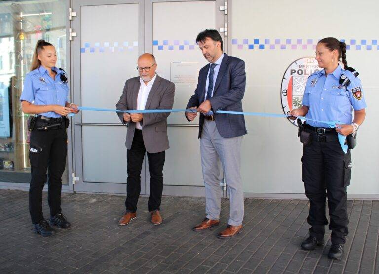 České Budějovice – V Dopravně obchodním centrum Mercury na Nádražní ulici byla dnes oficiálně otevřena nová služebna Městské policie České Budějovice. Zázemí bude sloužit strážníkům pro vyřízení nejnutnějších záležitostí. Prozatím nebude určeno kontaktu s veřejností. Slavnostního přestřižení pásky se dopoledne zúčastnil primátor Jiří Svoboda a ředitel DOC Mercury Jiří Ludačka.
