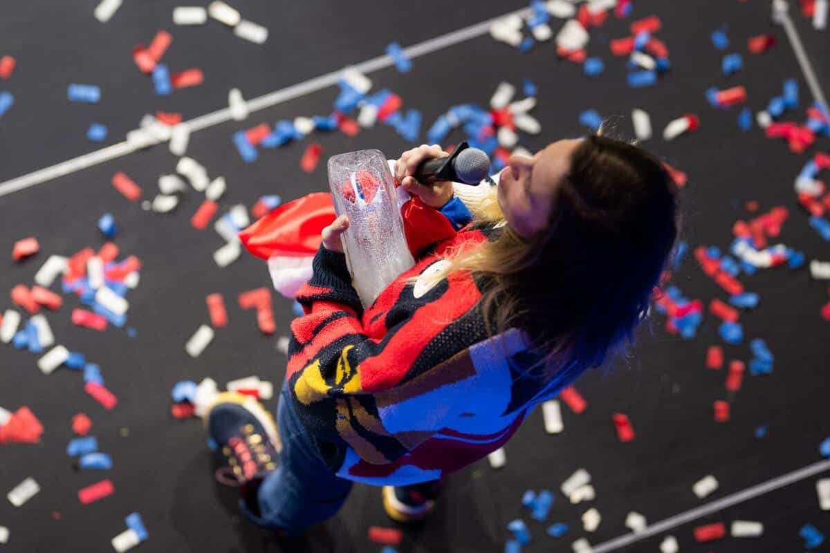 Adamczykové blahopřál také projektový manažer Olympijského festivalu Richard Mrázek. Z jeho rukou převzala speciální cenu od firmy Lasvit. Česká sklářská a designérská společnost ji vyrobila pro olympijské medailisty na zimních olympijských hrách Milán – Cortina 2026. Ručně foukané skleněné objekty vznikly speciálně pro tuto příležitost a českým sportovcům budou připomínat jejich olympijský úspěch i cestu, která k němu vedla.