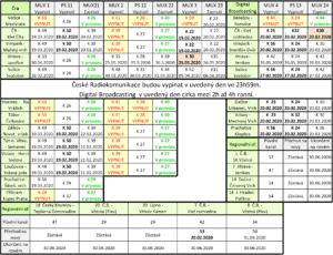 Aktuálně: Dva důležité vysílače (a některé dokrývače) v jižních Čechách ukončily v noci ze 13.2. na 14.2. na týden provoz na K39 (skončil původní multiplex 2). Po týdnu se na K39 objeví programy ČT HD, které ukončí provoz na K50. Pro jejich příjem bude nutný nový přijímač. Kdo ho nevlastní, nemůže již nyní přijímat některé komerční programy.