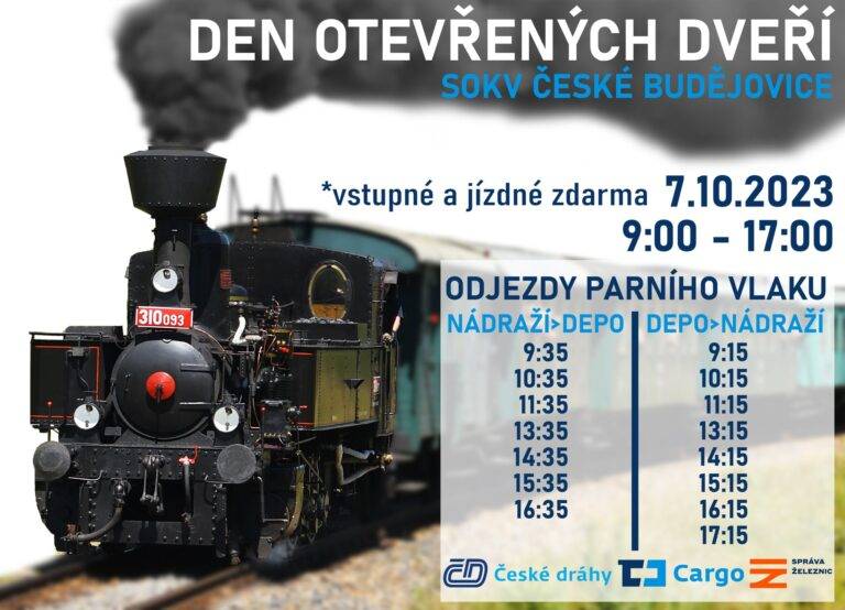 Akce je pořádána ve spolupráci s ČD a Správou železnic. Těšit se můžete na výstavu hnacích vozidel, chybět nebude ani oblíbený prezentační vůz ČD Cargo plný her a zábavy. Doprava z osobního nádraží do SOKV bude zajištěna parními vlaky.