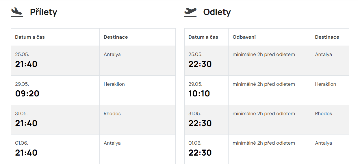Více aktuálních příletů a odletů z Letiště České Budějovice ZDE: