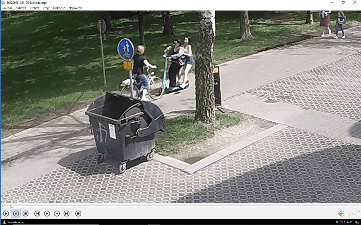 Dne 8. června 2022 v 15:15 hod., v Českých Budějovicích, na cyklostezce mezi ulicemi Průběžná a Čéčova, jely na sdílené koloběžce dvě dosud neustanovené mladé dívky, které se střetly s protijedoucí cyklistkou. Aniž by poskytly zraněné ženě první pomoc, s koloběžkou po chvíli odjely a nehodu neohlásily na Policii České republiky. Strážcům pořádku se podařilo zajistit kamerové záznamy, kde je popsaná situace nahraná – viz příloha. Svědci či přímo samotné dívky, se mohou nahlásit policistovi nprap. Janu Mandíkovi.