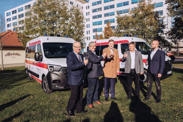 Ve čtvrtek 9. listopadu předali generální ředitelé dvou významných regionálních společností Madeta, a.s. a GW JIHOTRANS, a.s. předsedovi představenstva Nemocnice České Budějovice, a.s. dva sanitní vozy v celkové hodnotě 3,2 milionu korun.