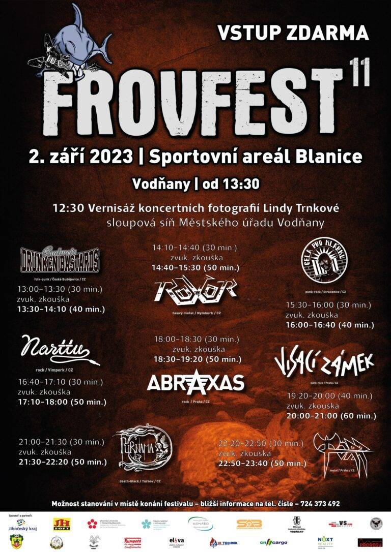 Ve Vodňanech proběhne v sobotu 2. 9. 2023 již jedenáctý ročník studentského, rockově-multižánrového festivalu FROVfest.