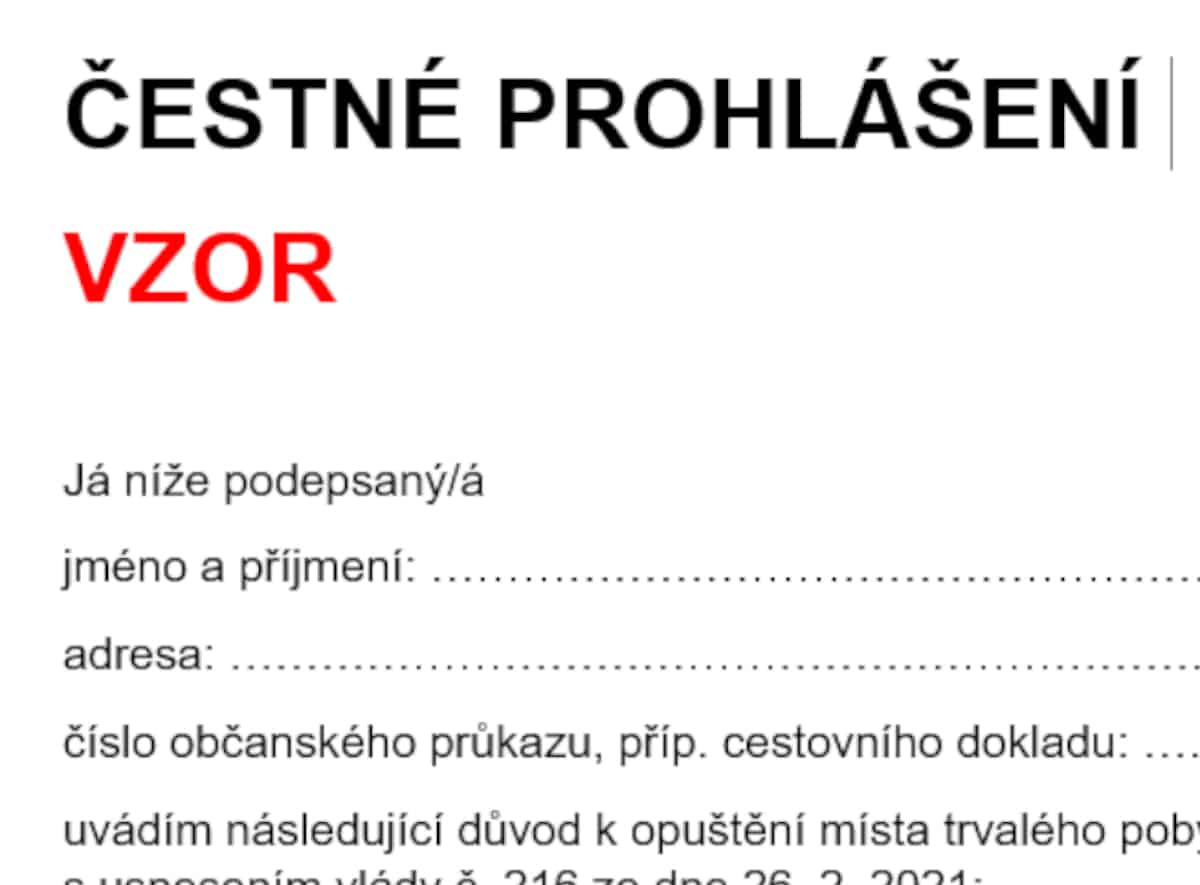 Stačí zaškrtnutý formulář nebo čestné prohlášení, kde uvedu místo, čas a cíl cesty. Pro čestné prohlášení mohu využít vzor nebo stačí prohlášení napsané rukou. Stále však musí jít o cestu, která skutečně spadá do povolených výjimek. Policie může ověřovat podezřelé případy, například když cestuji „k lékaři“ s lyžařskou výbavou a celou rodinou. Pokud máte jakékoliv potvrzení, které dokazuje nezbytnost Vaší cesty (například žádanku od lékaře na vyšetření, pozvánku na úřad apod.), vezměte si ji pro jistotu s sebou.