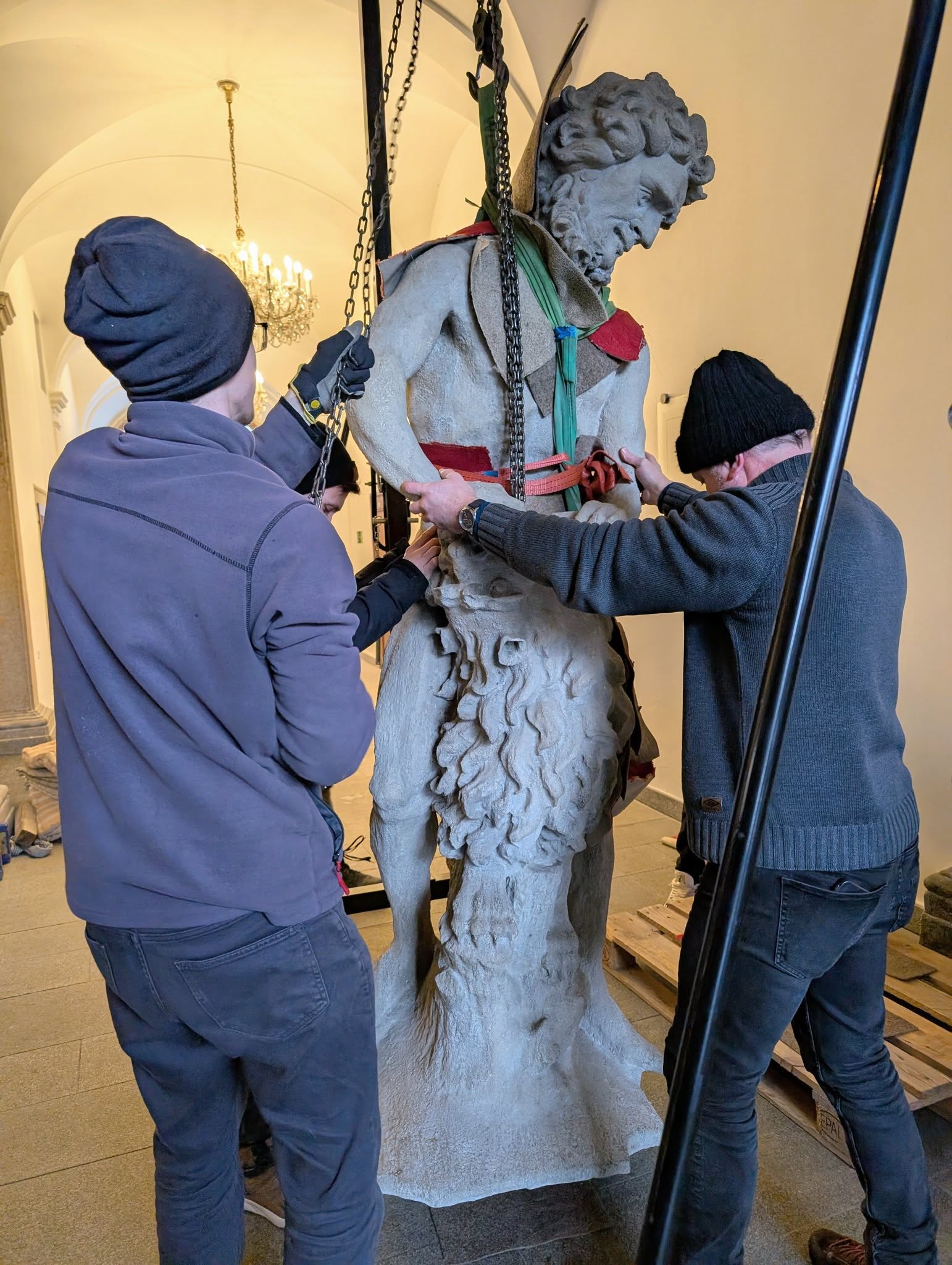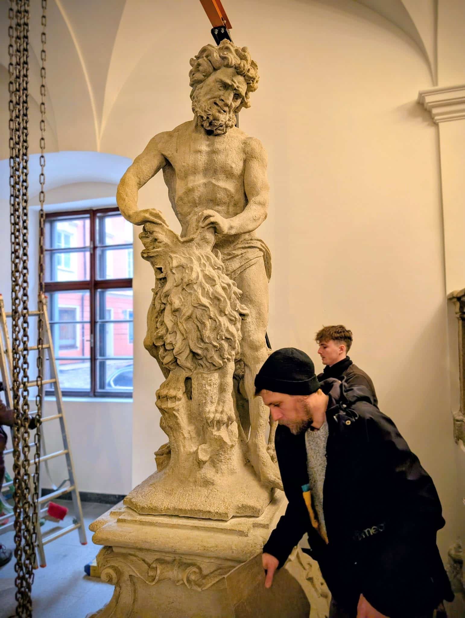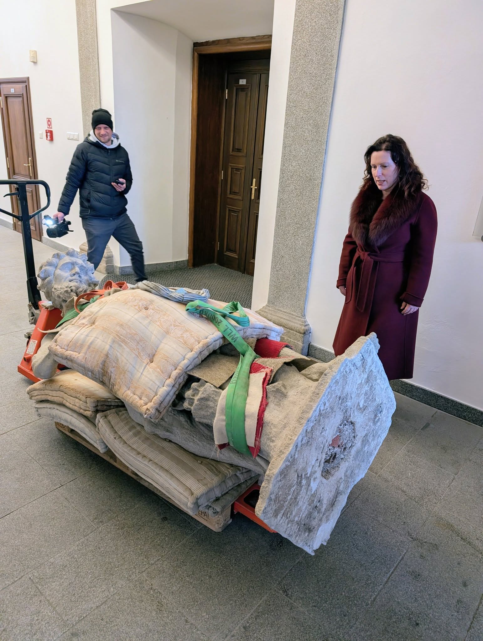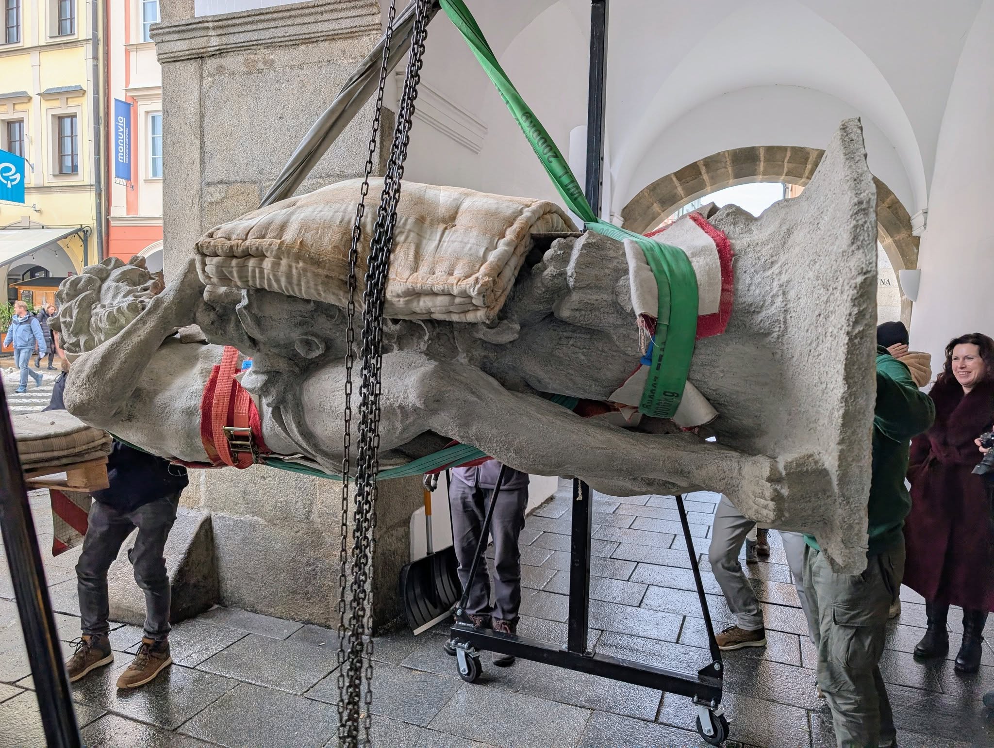 „Po 300 letech vůbec poprvé a za velké pozornosti veřejnosti byla 1,5 tuny vážící socha převezena z vestibulu radnice do Prahy. Město umělecké dílo zapůjčilo Národnímu památkovému ústavu, stejně jako vzácnou tapisérii z dílny Marie Teinitzerové – Hoppeové podle návrhu Cyrila Boudy a obraz Zvíkov od malíře Karla Stehlíka. V úterý 13. ledna 2026 se nám vše v pořádku vrátilo domů, do našich krásných Budějc,“ sdělila primátorka Dagmar Škodová Parmová.