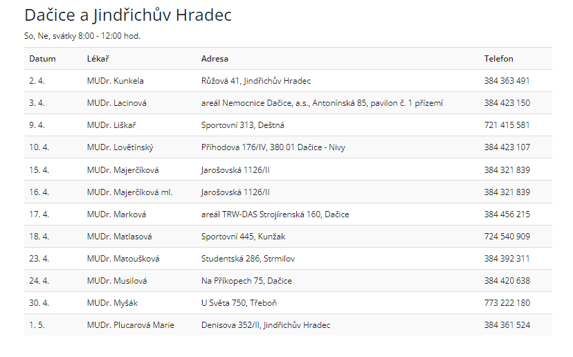 Zubní pohotovost v dubnu 2022 v Jihočeském kraji