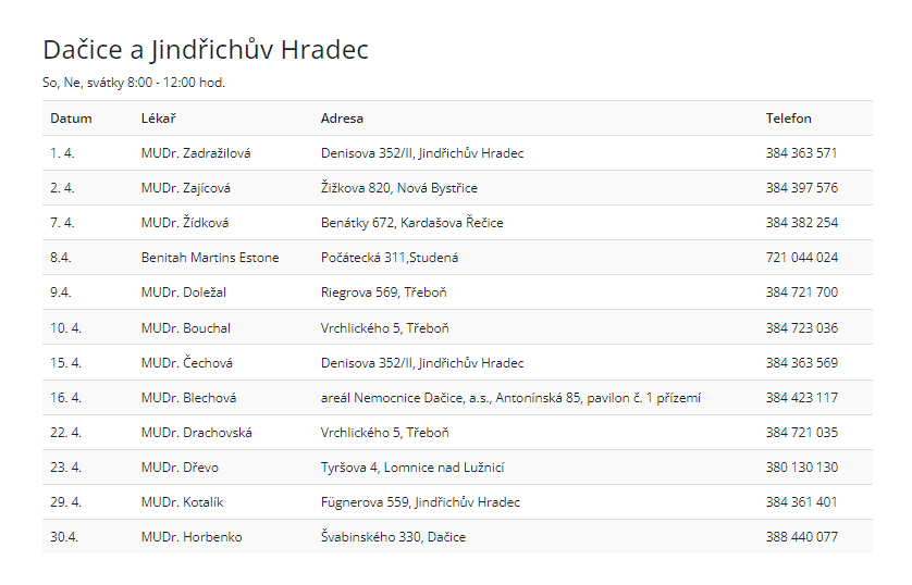 Zubní pohotovost v dubnu 2023 v Jihočeském kraji