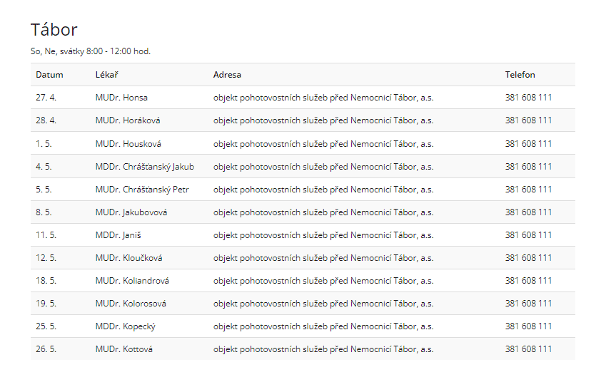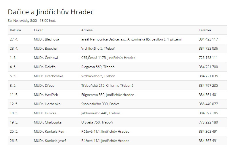 Zubní pohotovost v květnu 2024 v Jihočeském kraji