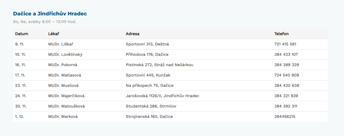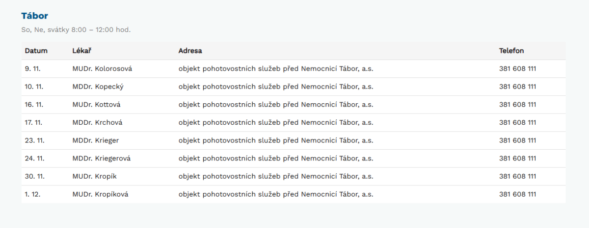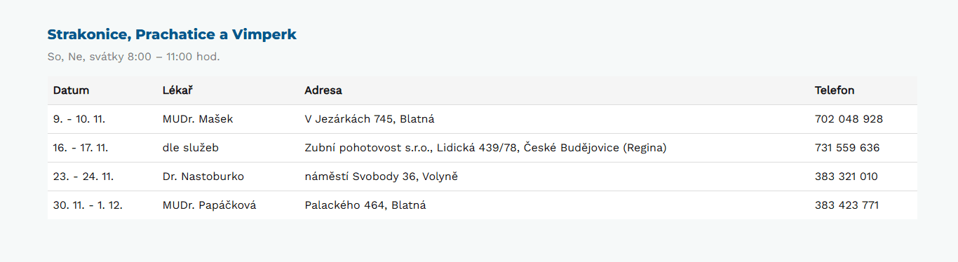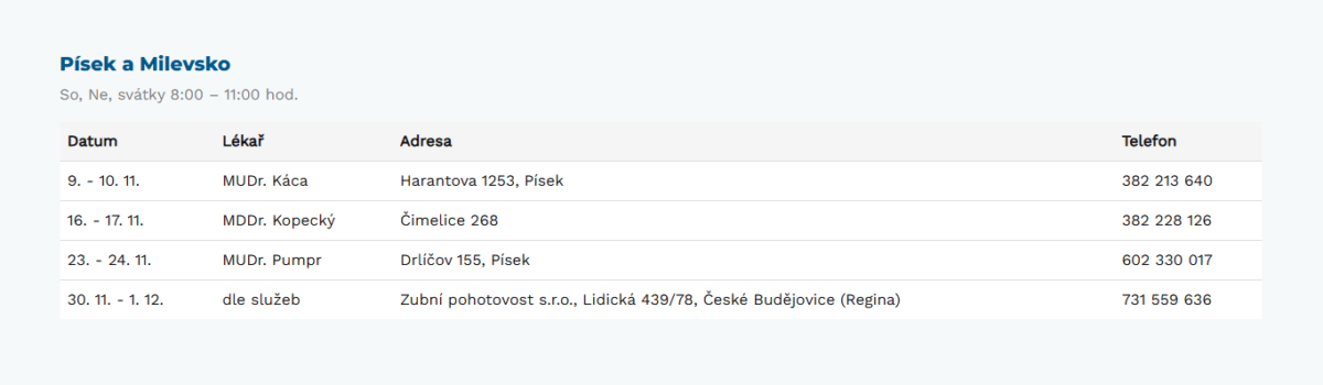 Zubní pohotovost v listopadu 2024 v Jihočeském kraji