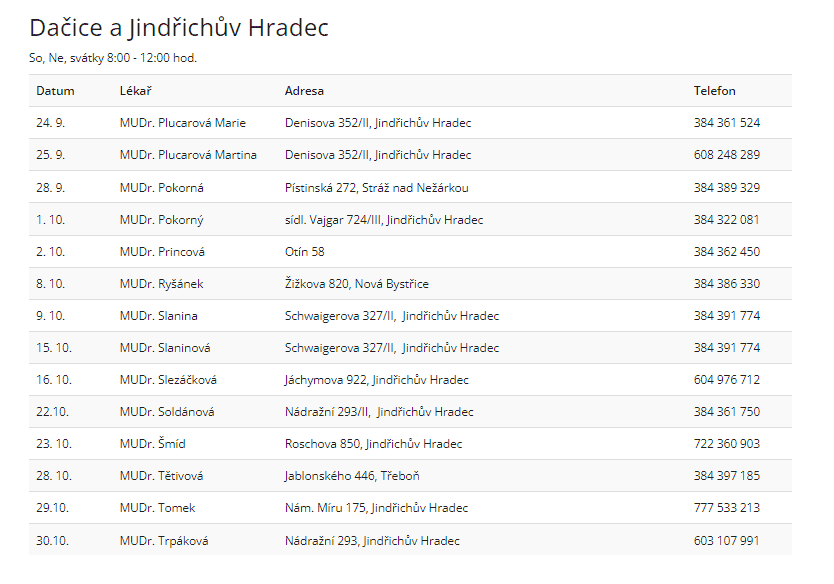 Zubní pohotovost v říjnu 2022 v Jihočeském kraji