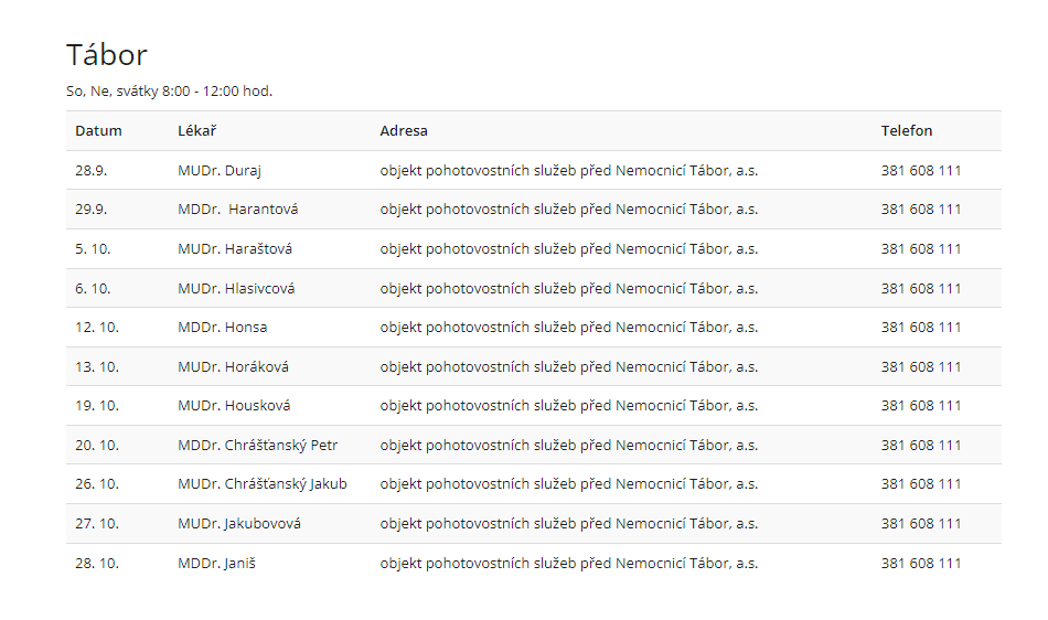 Zubní pohotovost v říjnu 2024 v Jihočeském kraji