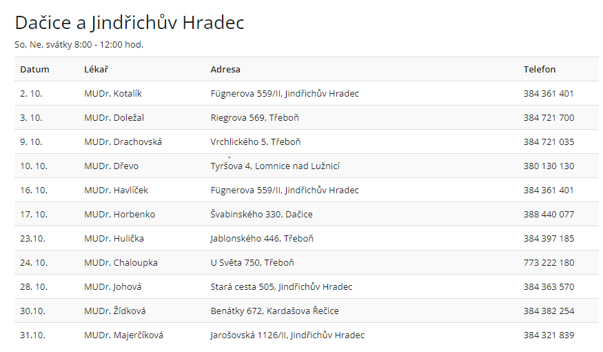 Zubní pohotovost v říjnu v Jihočeském kraji